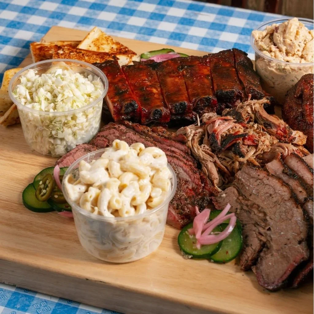 Choice of 2 meats and 3 sides, every day, now through Super Bowl. $90, feeds 5.