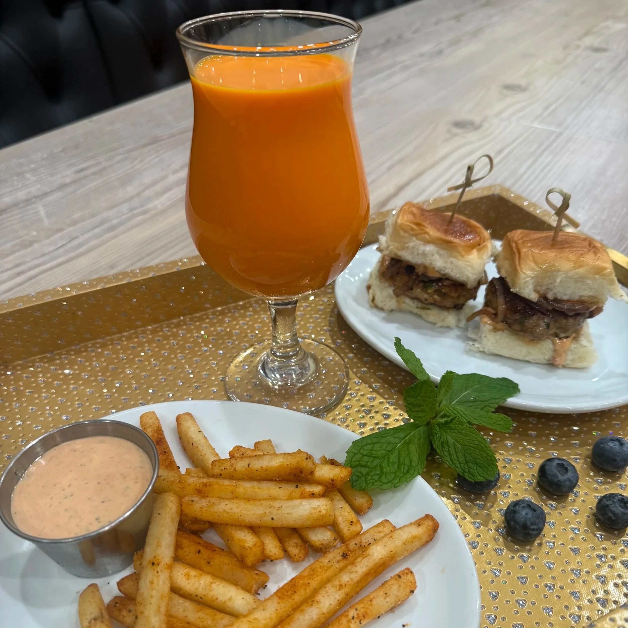 Includes 2 juicy lamb sliders, masala fries, and a refreshing mango lassi.